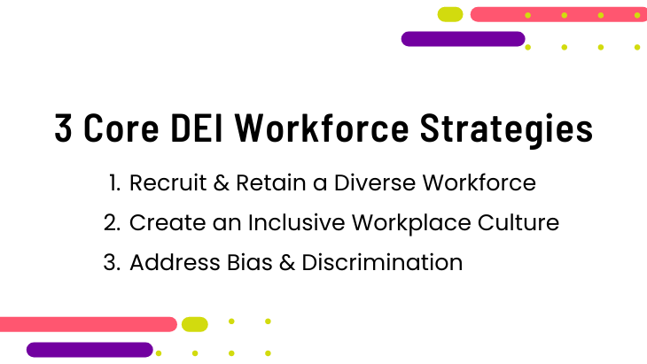 DEI in nursing is a critical aspect of healthcare as it ensures that the nursing workforce mirrors the patient population, fostering cultural competency and patient satisfaction. Moreover, a diverse nursing workforce brings a variety of perspectives, ideas, and experiences, contributing to innovative solutions and improved patient outcomes. There are three core strategies in developing and maintaining a diverse workforce.